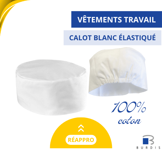 Calot de boucher en coton blanc permettant de protéger la tête et la...