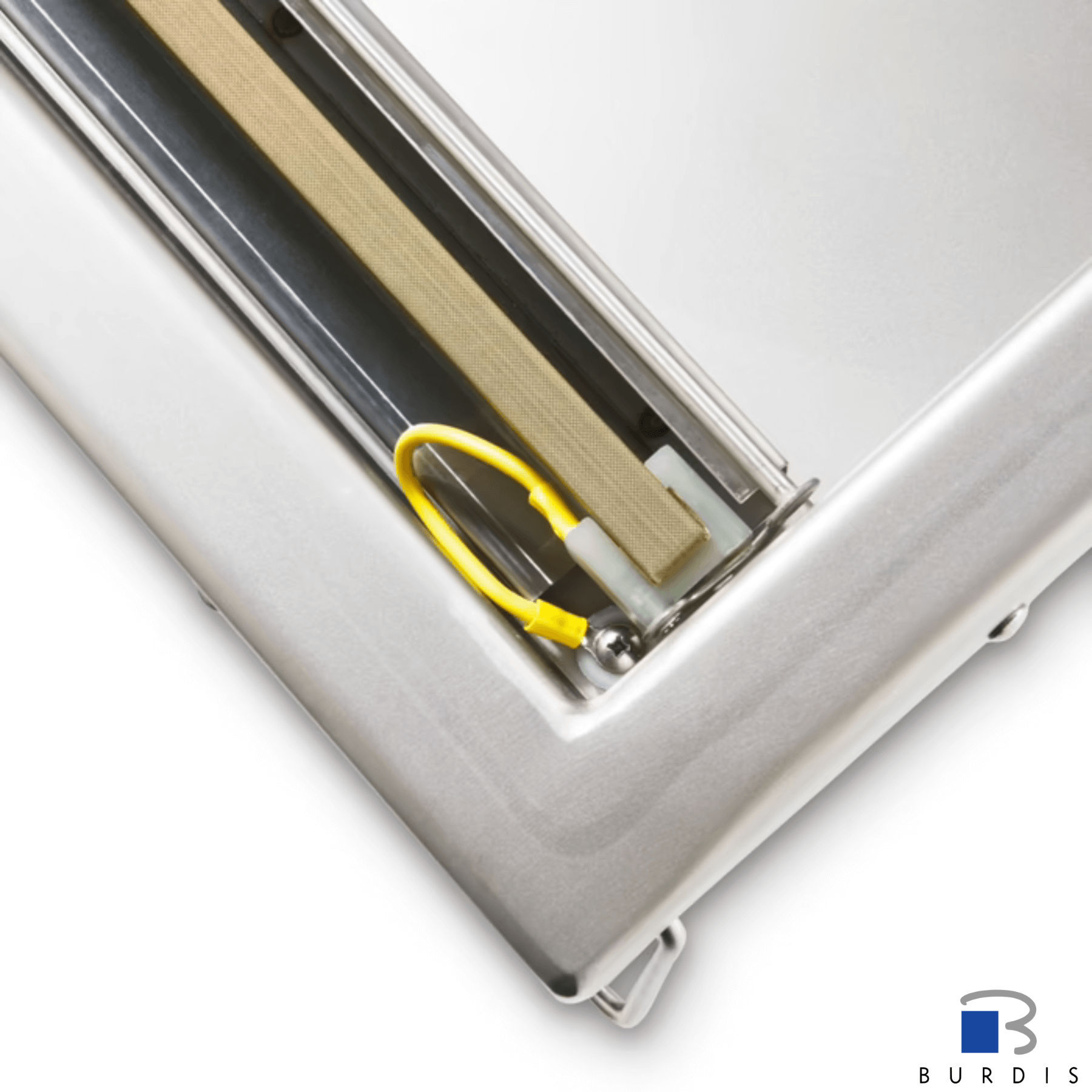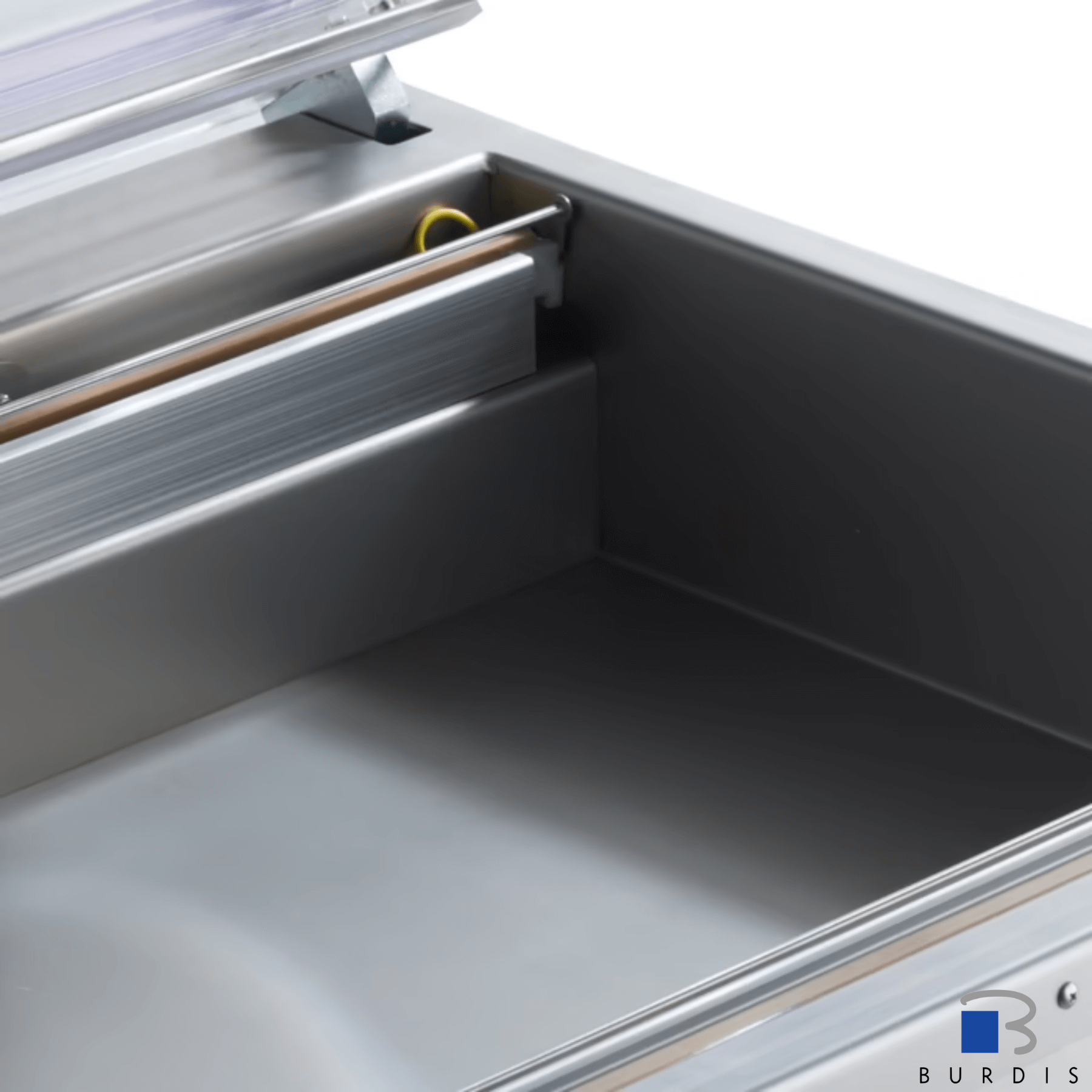 Pour plus de productivité, la machine est équipée de 2 barres de soudure, l'une en face de l'autre. Cela permet de fermer plusieurs sacs sous-vide en même temps. Comme indiqué sur les photos, ce modèle convient parfaitement à l'emballage de volailles entières (3 petits poulets peuvent être emballés simultanément).