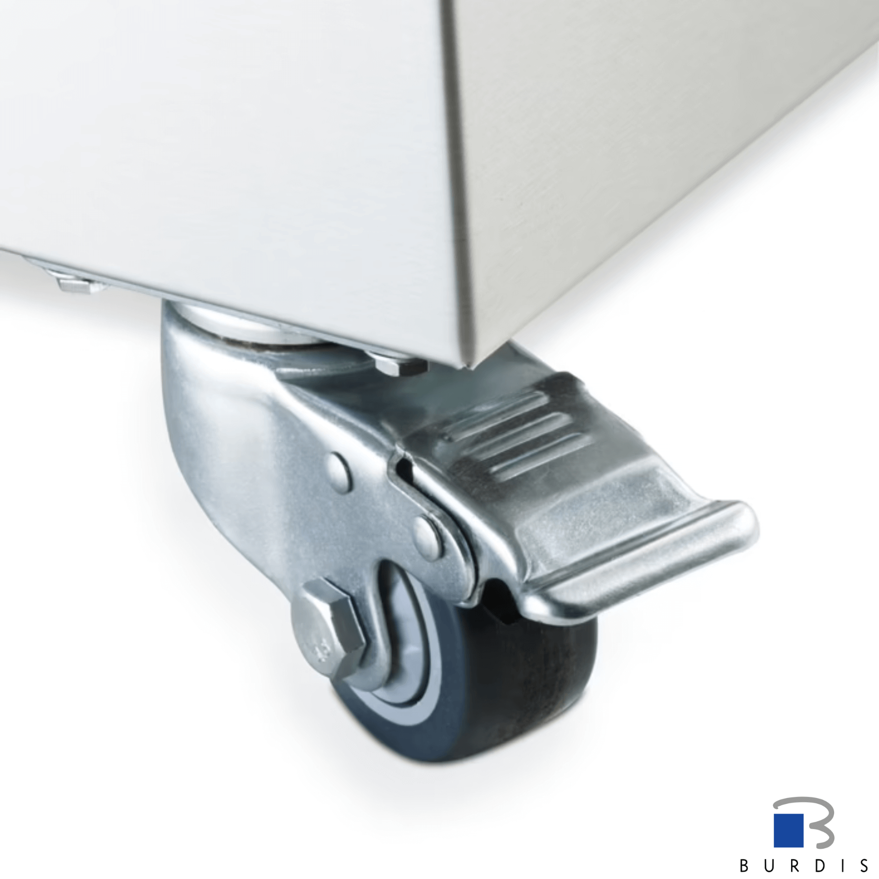 Sur 4 roulettes, ce modèle est pratique et facile à déplacer. Il dispose de freins, lui permettant de rester bien en place lorsque cela est nécessaire.